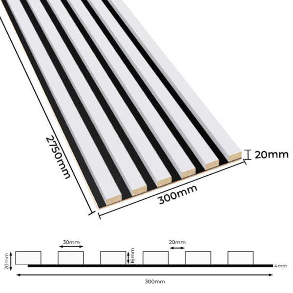 Akustik-Wandpaneele sind eine modische und praktische Art, Ihr Interieur zu dekorieren! Dank der 4 mm dicken Eichen-HDF-Platte und der vertikalen Lamellen absorbieren die Paneele hervorragend Schallwellen und eliminieren den Nachhall im Raum. Abgesehen von ihrer akustischen Funktion sind die Paneele auch eine modische und moderne Dekoration für Wände und Decken in jedem Interieur. Die Wandpaneele sind in 15 verschiedenen Dekoren erhältlich, die auf einer Eiche-, schwarzen oder weißen Platte aus haltbarem und leichtem HDF montiert sind. Sehen Sie sich die verfügbare Lamellenvariante auf der Eichenplatte an!