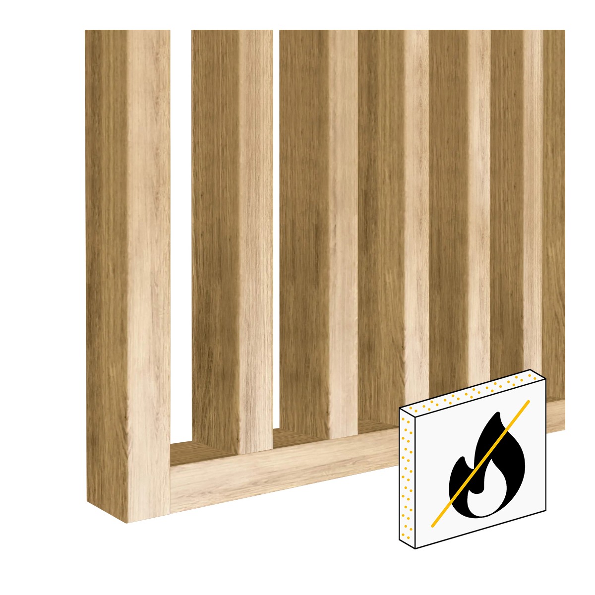 Dank ihrer Brandklassifizierung (NRO) wirken die Latten als Schutz gegen die Ausbreitung von Feuer. Der Vorteil von Materialien mit NRO-Klassifizierung ist, dass sie keinen Rauch oder andere schädliche und gefährliche Stoffe entwickeln und vor allem schwer entflammbar sind.