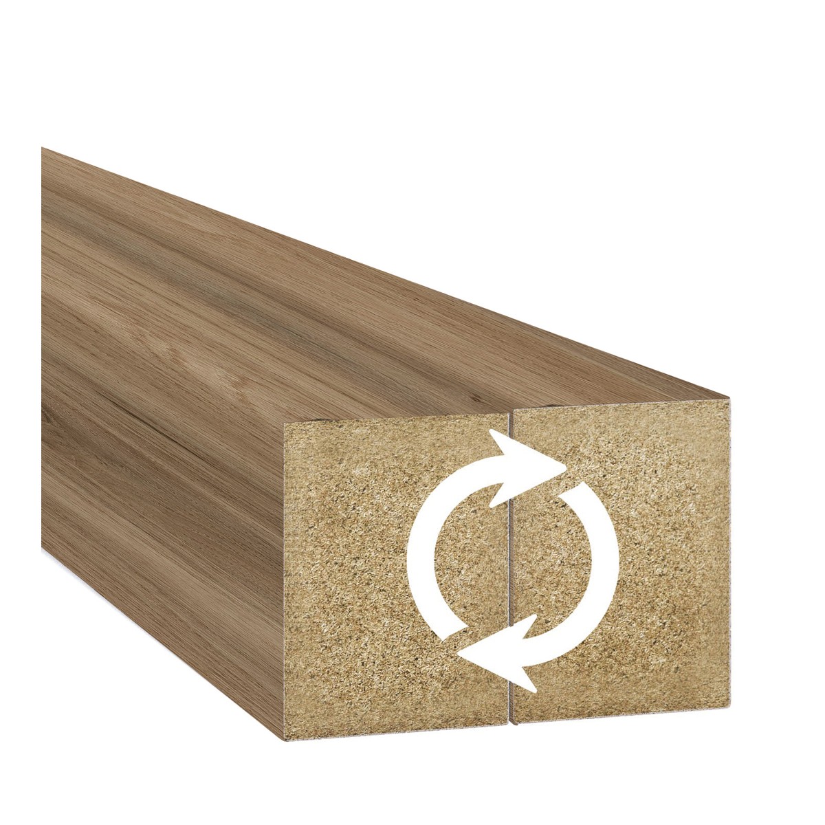 Die Lamellen im Farbton Eiche dunkel sind nicht nur ästhetisch, sondern auch praktisch. Mit ihnen können Sie eine modische Trennwand gestalten, mit deren Hilfe Sie Zonen in größeren Räumen effektiv unterteilen und deren Funktionalität erhalten können. Eine durchbrochene Wand aus Lamellen ist ein zuverlässiger Weg, um Abwechslung in ein Arrangement zu bringen, das einen unkonventionellen Charakter erhält. Lamellen an Wänden oder Decken wirken sich positiv auf die Akustik einer Wohnung aus und machen sie optisch wärmer.