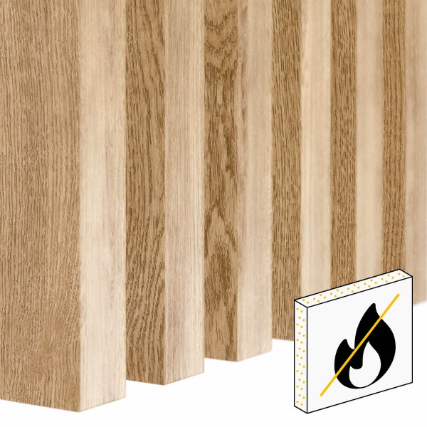 Lamele fornirowane dzięki wykorzystaniu surowca MDF i filcu o wysokiej klasyfikacji ogniowej B-s2,d0, a także forniru pokrytego lakierem ogniochronnym o klasyfikacji B-s1,d0, mogą być stosowane w przestrzeniach użyteczności publicznej. Nasza oferta opiera się na indywidualnym podejściu do każdego klienta, bez wyjątku, dlatego wyprodukujemy dla Ciebie lamele o dowolnych wymiarach.